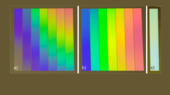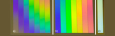 The colours change in hue with the viewing angle when the spacing between the ripples is constant (a) and they appear homogenous when ripples vary in period spacing (b). However, when mixing different variable period spacings, light is reflected non-specifically and appears white (c).